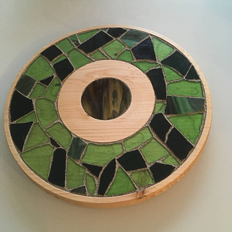En terre de céramique froide, étalée au rx à pâtisserie, peint frais sur frais de manière particulière, séchée, cuit au four 160°(four ménager)vernis résine,
